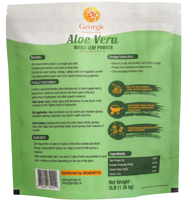 A Whole Leaf Aloe Powder (Aloe Barbadensis) is plant supplement in natural form. Used as a root drench and foliar spray while also performing in hydroponic and other growth mediums.